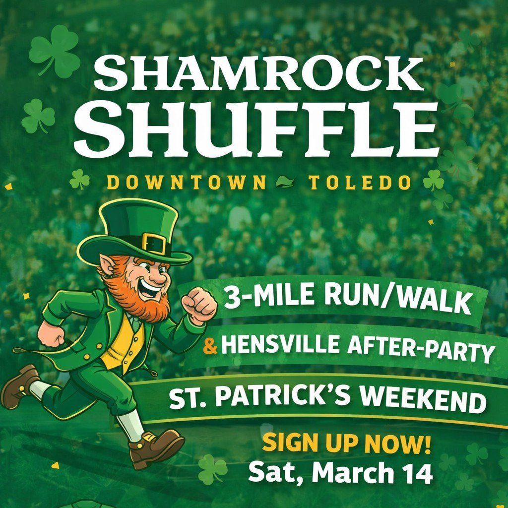 Warehouse DistrictThe Shamrock Shuffle is a lively, festive 3-mile run/walk event held on St. Patrick’s Day weekend in downtown Toledo, Ohio. Dress up in your best Irish kilt and run with glow sticks. Hensville Park will serve as our official post race party in conjunction with the St. CatTrick’s Day Weekend Party put on by the Toledo Walleye. Capture the excitement of Toledo Walleye Hockey at our St. Patrick’s Day party at Hensville Park — a recipe for an evening to remember.