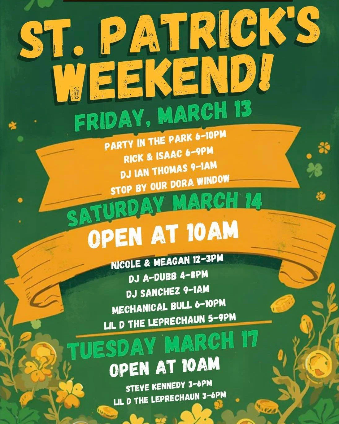 Warehouse District🍀🎶 Get ready to shamROCK your Friday night! 🤘 Party in the Park is back at Huron Yards with a special St. Paddy’s edition you don't want to miss! 🍻✨