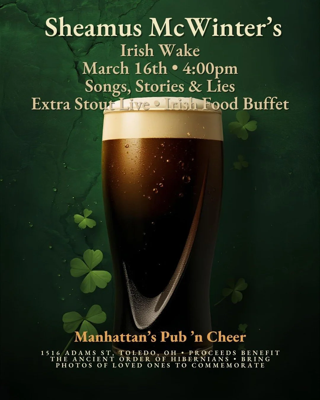 Uptown DistrictCelebrating the the life (and timely death) of Sheamus McWinter. Join us at Manhattan’s Pub ‘n Cheer for a traditional Irish Wake, songs, stories and lies. Enjoy music from Extra Stout and a full Irish food buffet!