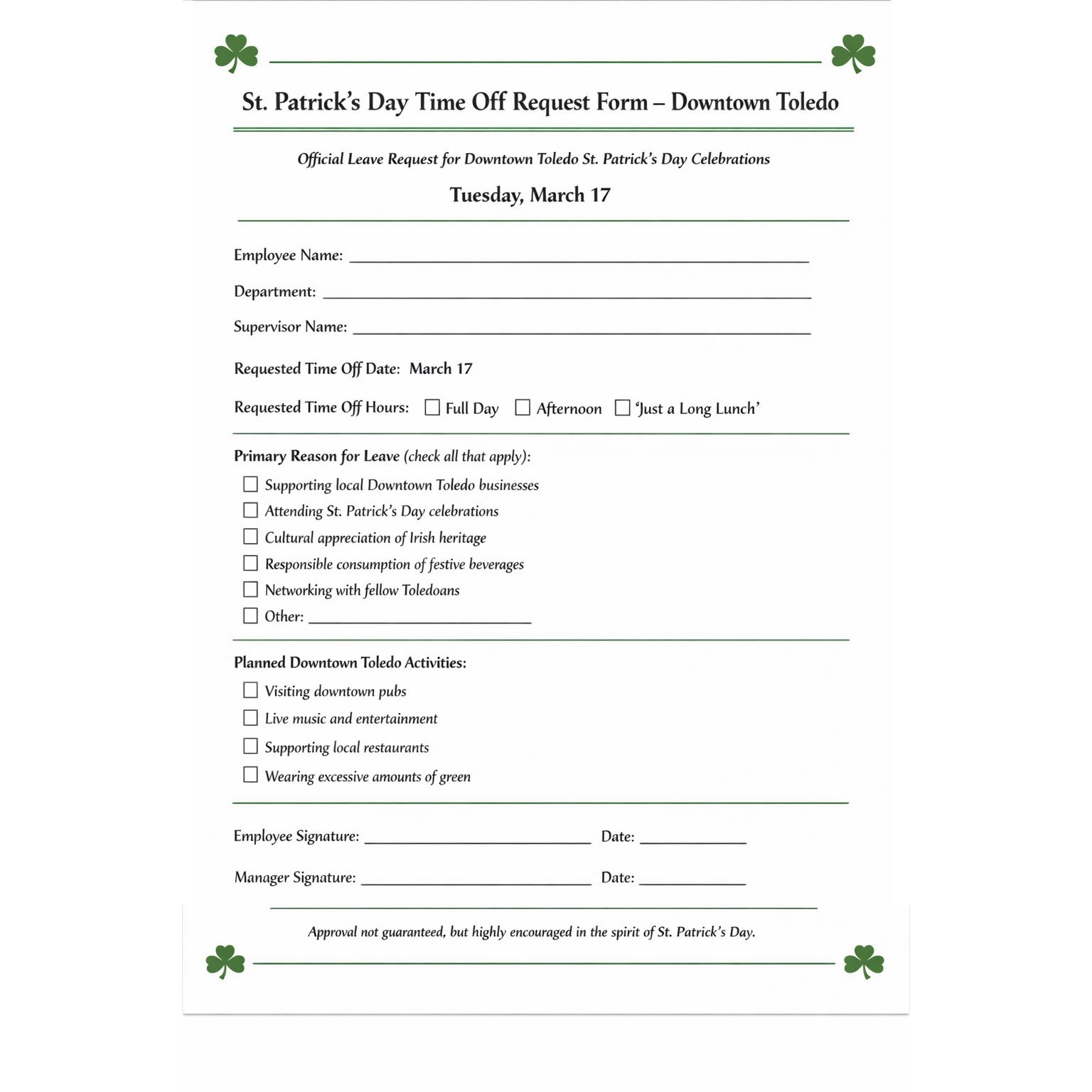 Warehouse DistrictGet ready to experience the ultimate St. Paddy’s Day celebration! On March 14th, join us for an unforgettable bar crawl filled with green drinks, shamrocks, and non-stop fun! We’ll be hopping between the best bars in Toledo, enjoying exclusive drink specials, festive giveaways, and all the lively energy of St. Patrick’s Day.