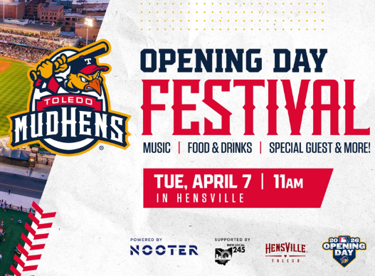 Get ready for the first-ever Opening Day Festival — Toledo’s can’t-miss event of the year! Hensville is turning Opening Day into a full-blown celebration. Join us starting at 11 a.m. as St. Clair Street and Hensville Park come alive with nonstop music and entertainment, featuring an incredible lineup including: